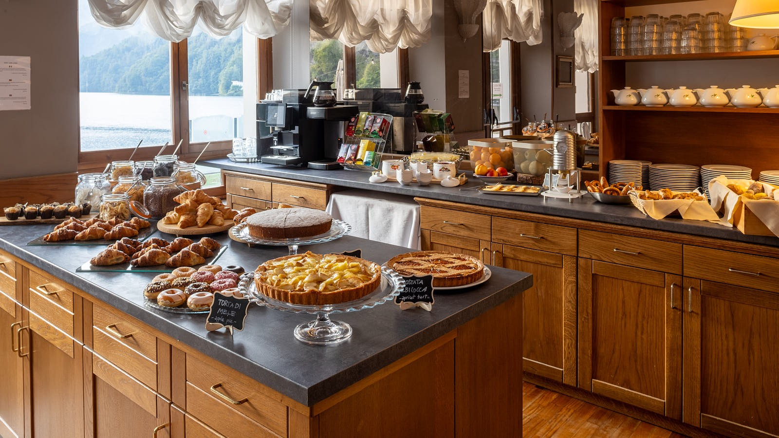 Non c’è risveglio in hotel che si rispetti senza una ricca colazione a buffet! Troverai torte fatte in casa, marmellate, cornetti, formaggi, affettati e uova strapazzate, il tutto accompagnato da succhi di frutta, caffè e cappuccini realizzati ad arte. Ancora più deliziosa sarà la vista: potrai infatti fare colazione direttamente in giardino, vista lago.