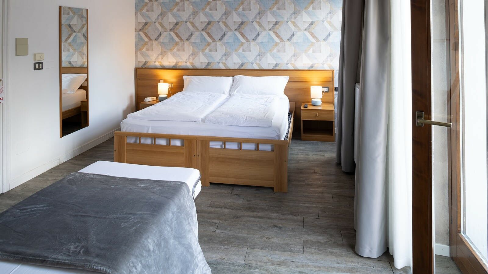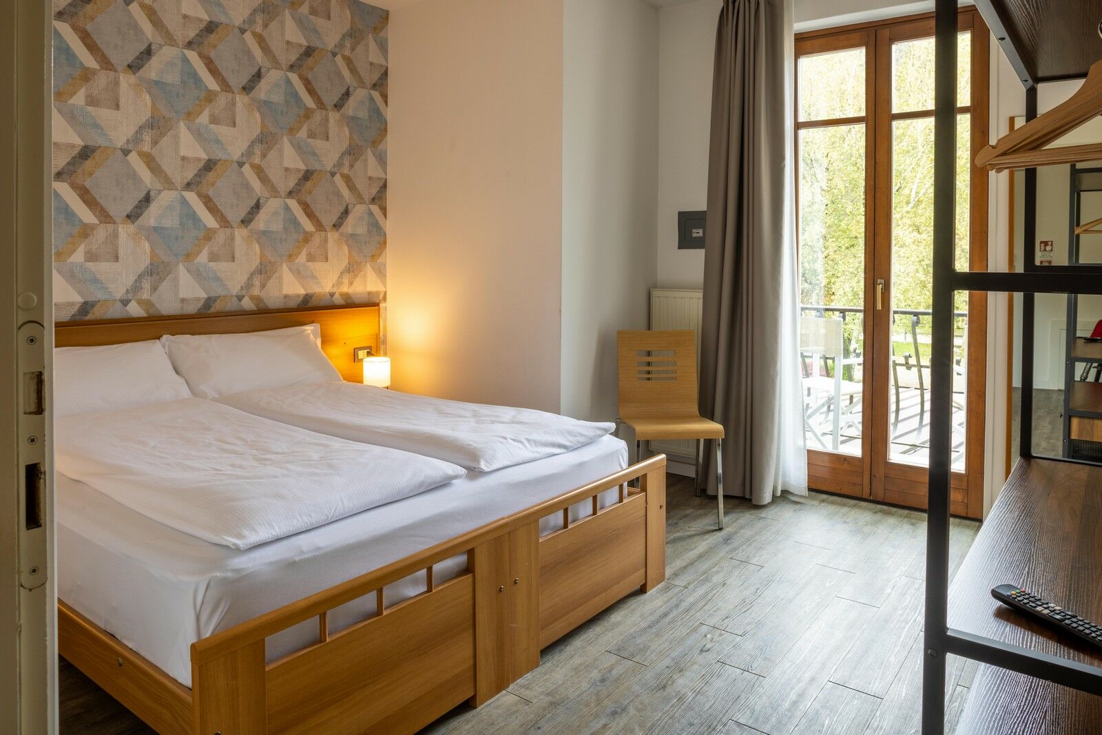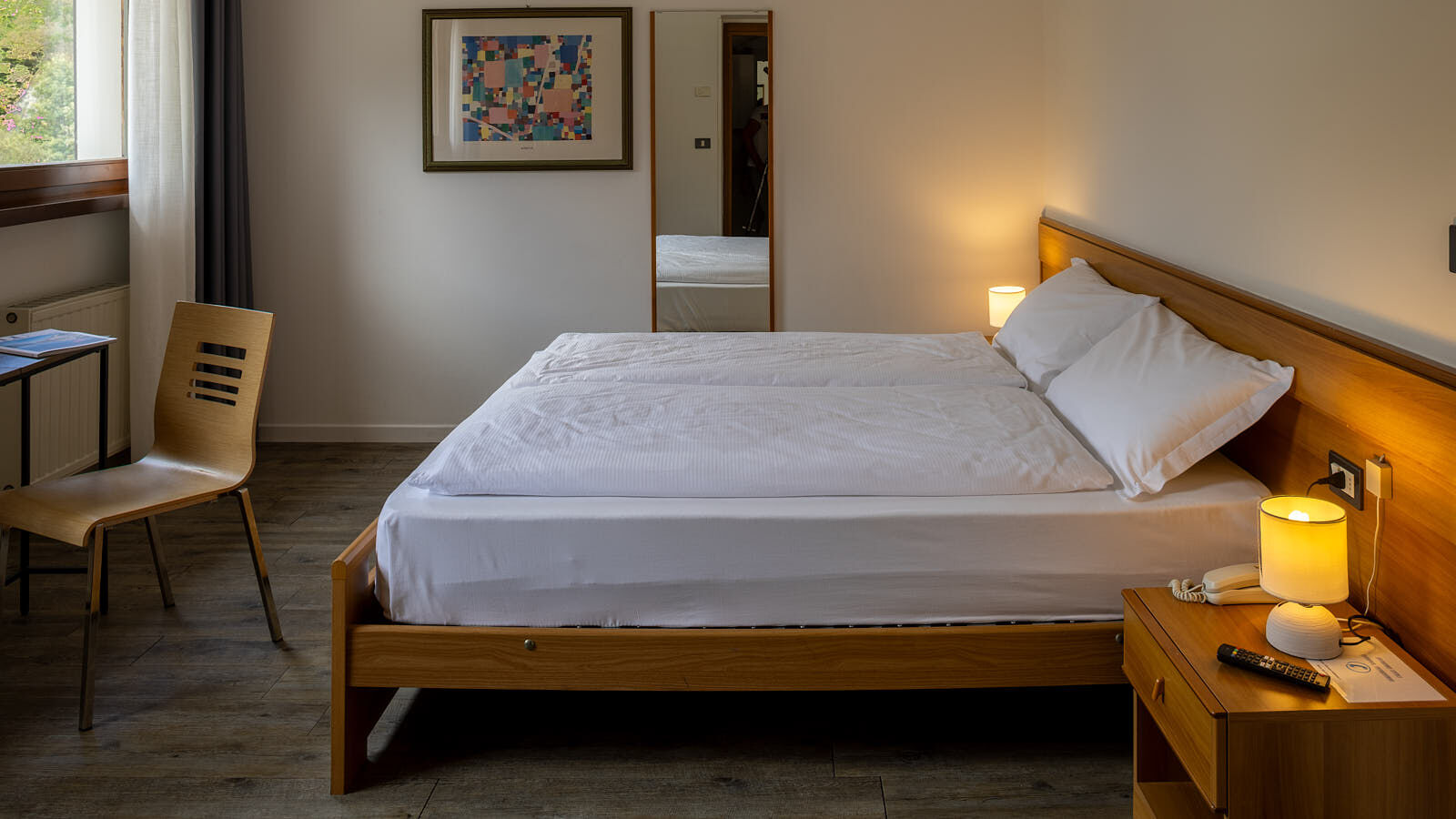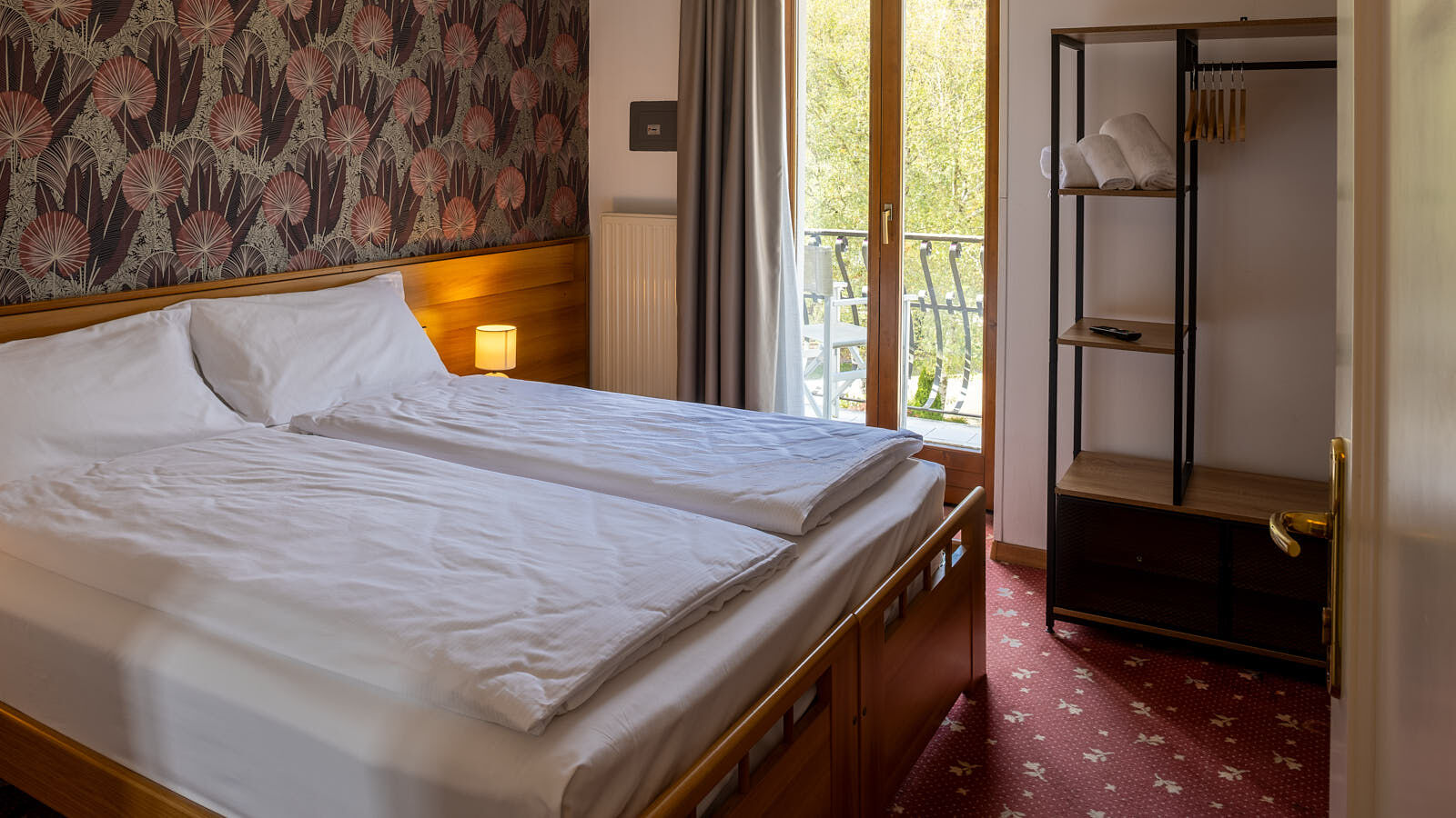 Una camera doppia con letto matrimoniale e balcone privato, recentemente rinnovata con una moderna carta da parati, a creare un piacevole abbinamento con il parquet del pavimento o la moquette. Una base imbattibile per scoprire la Valle di Ledro.