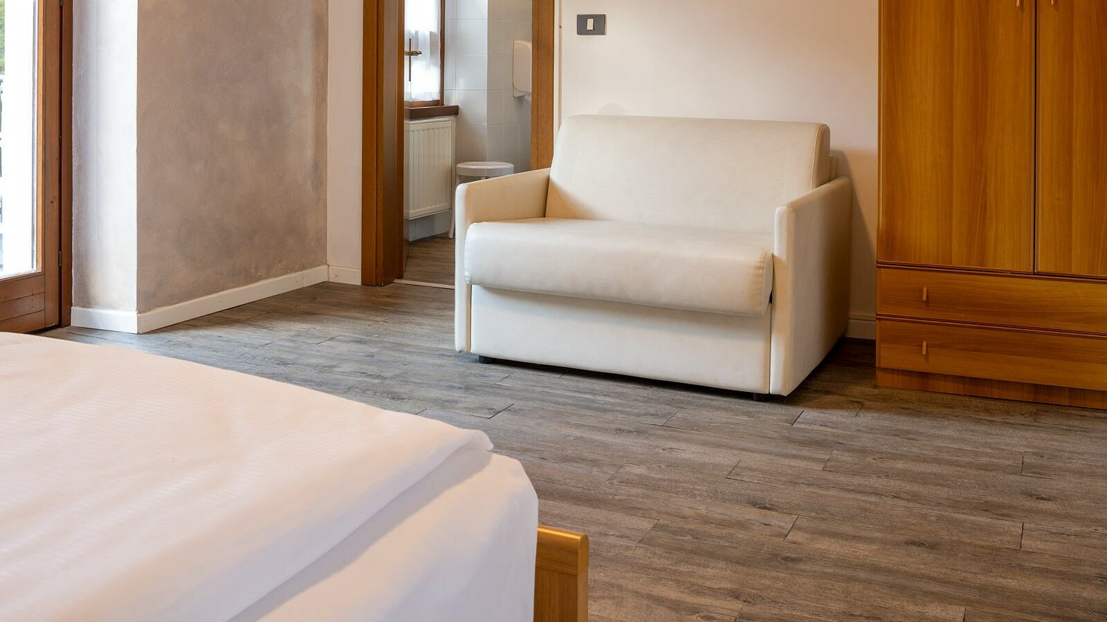 Per la coppia che insieme al proprio bambino vuole scoprire le meraviglie della nostra valle: una camera con letto matrimoniale e poltrona pronta a trasformarsi in letto singolo, rinnovata con carta da parati e con balcone privato.